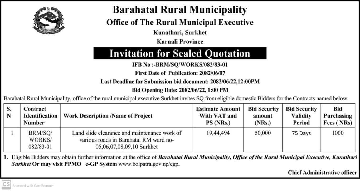 बोलपत्र आह्वान सम्बन्धी सुचना